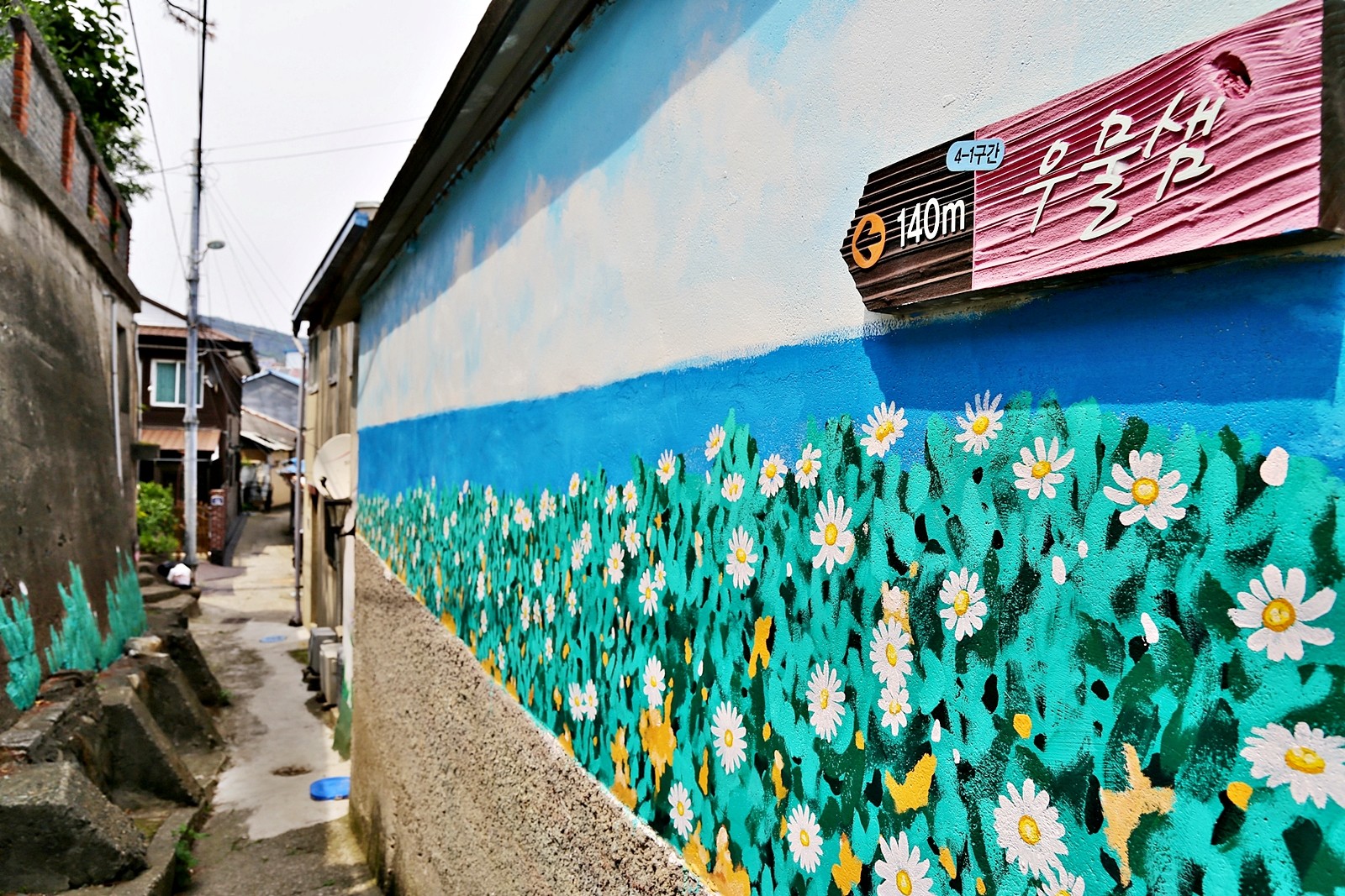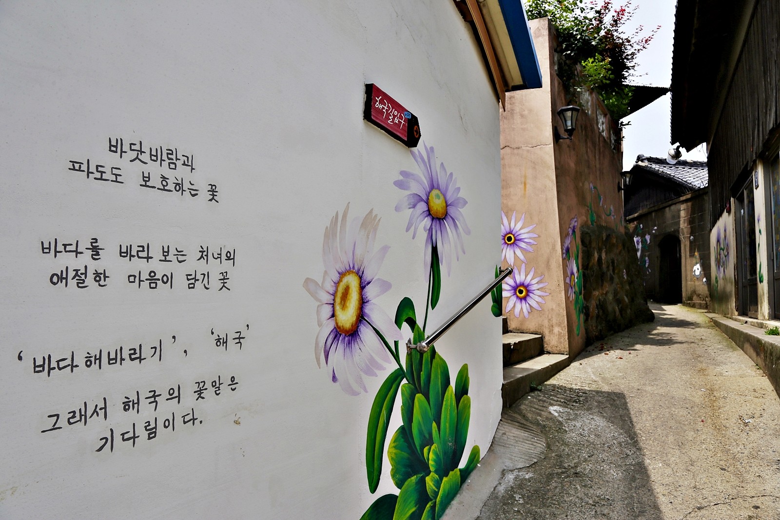 계단 전체에 해국을 그려놓은 스팟은 놓치지 말아야 할 포토존이다.