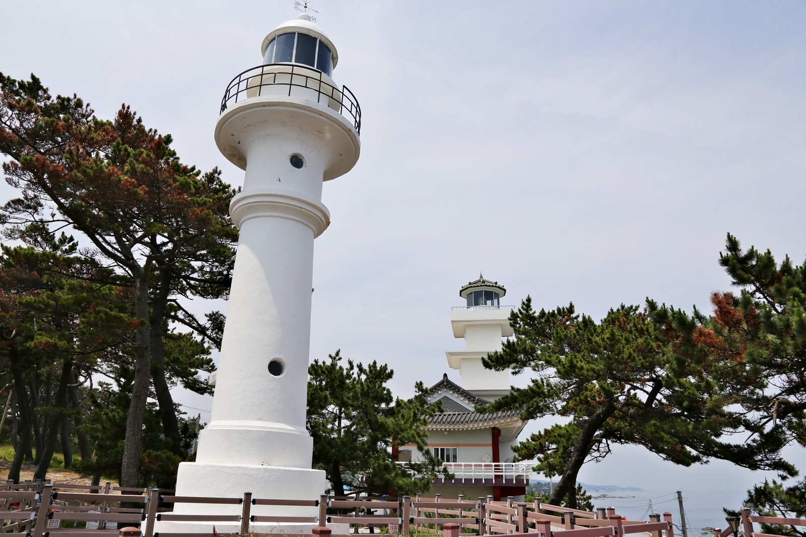 감은사지 삼층석탑을 형상화한 한옥 등대는 2001년에 기존 등대 옆에 새로 지어진 것이다.